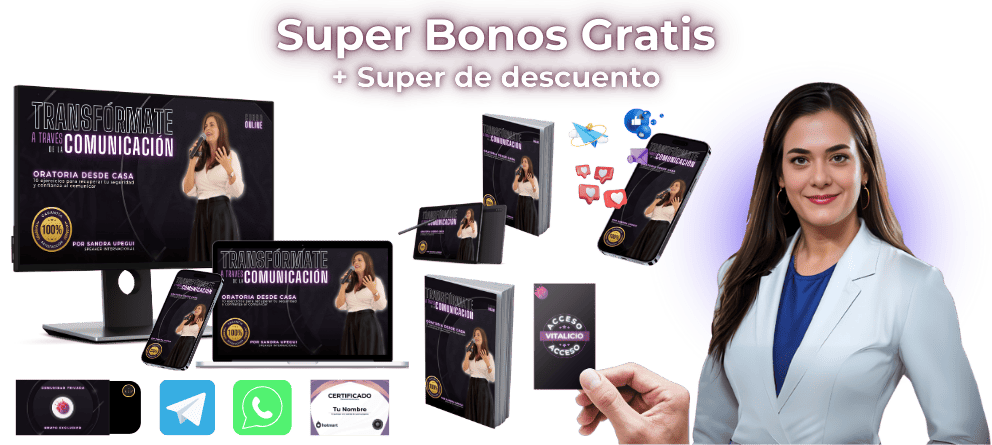 Si realmente quieres llevar tu oratoria al siguiente nivel, tengo más herramientas para ti. He diseñado una serie de entrenamientos digitales que te ayudarán a perfeccionar cada aspecto de tu comunicación: desde hablar en público hasta persuadir con tus palabras, vender con confianza y destacar en cualquier entorno.